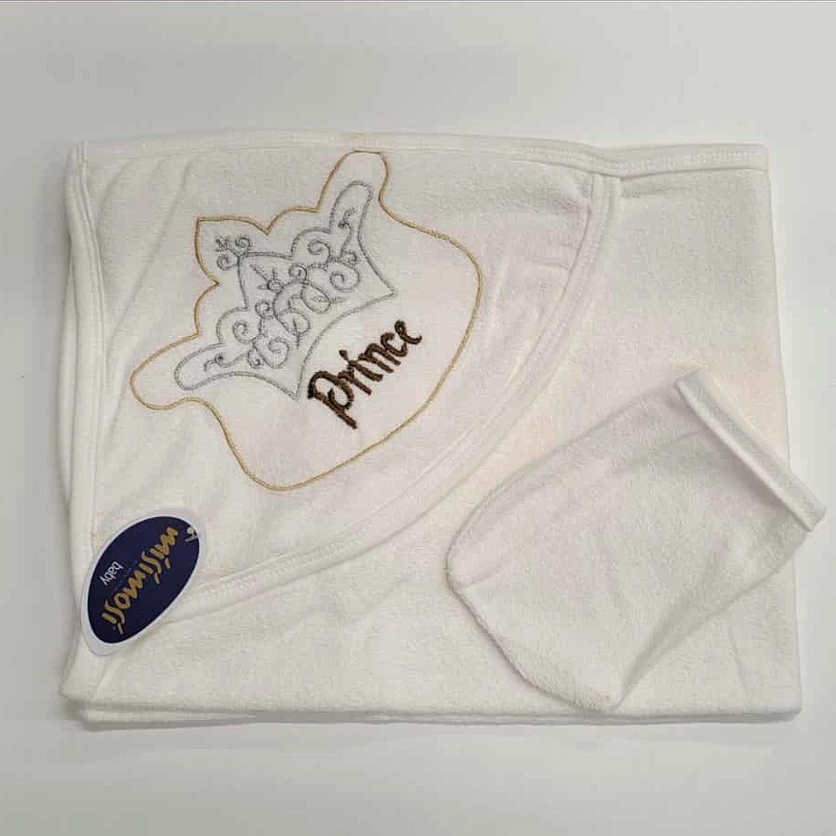 100% puuvilla froteest beebi kapuutsiga vannilina koos pesemiskindaga. Mõõdud 95cm x 76cm.