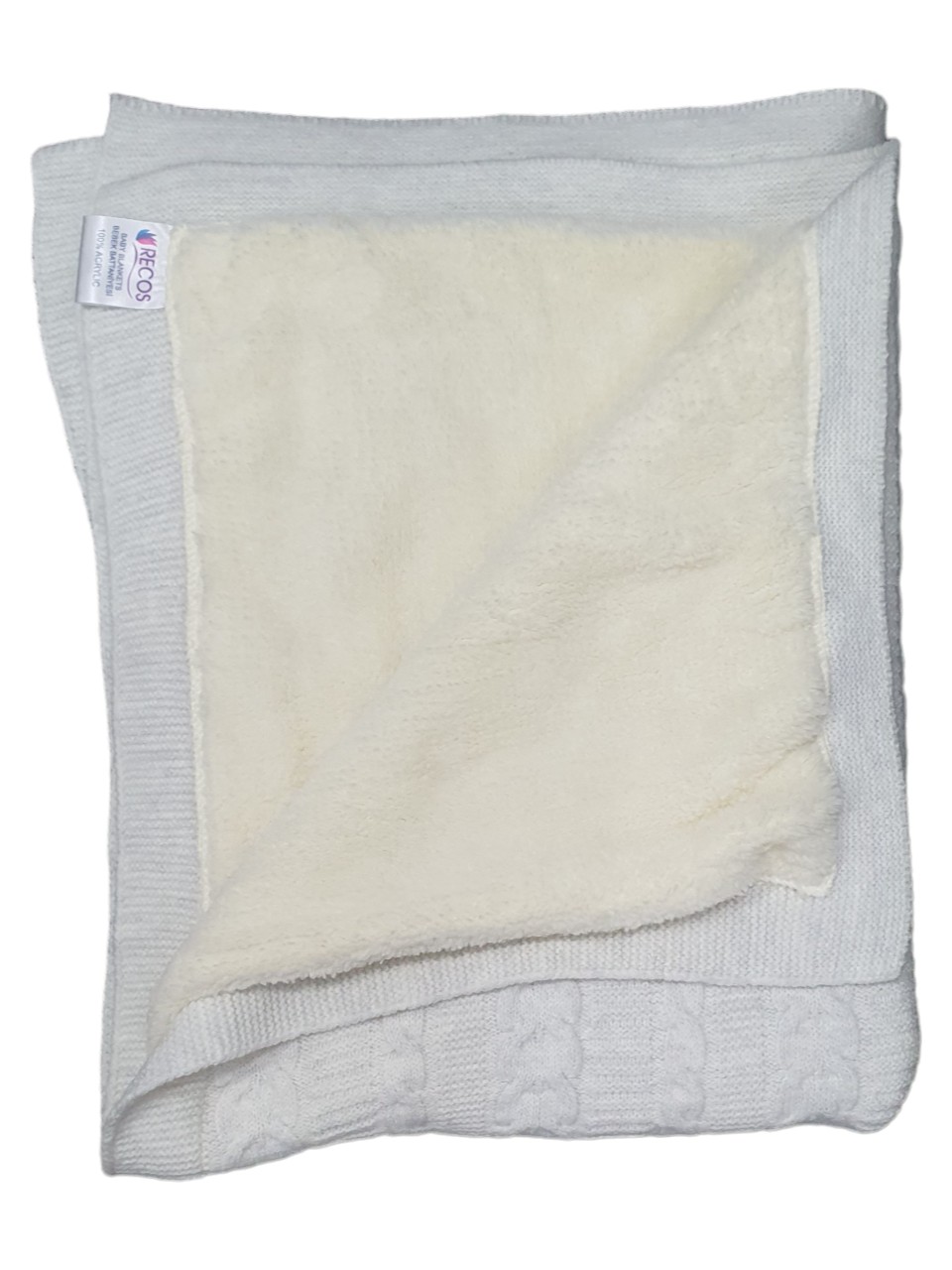 Kootud / fliisist kahepoolne beebitekk hoiab lapse mõnusalt soojas ka jahedamatel aegadel. Üks pool on kootud akrüüli lõngast, teine pehmest fliisist.