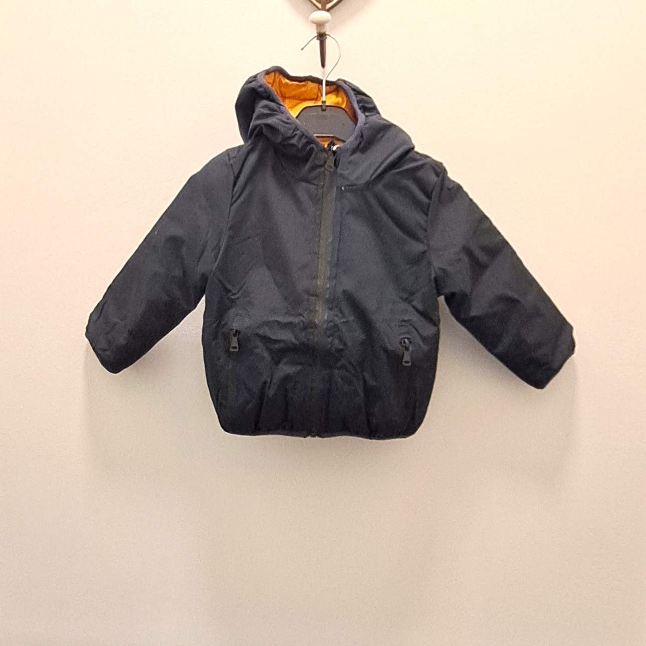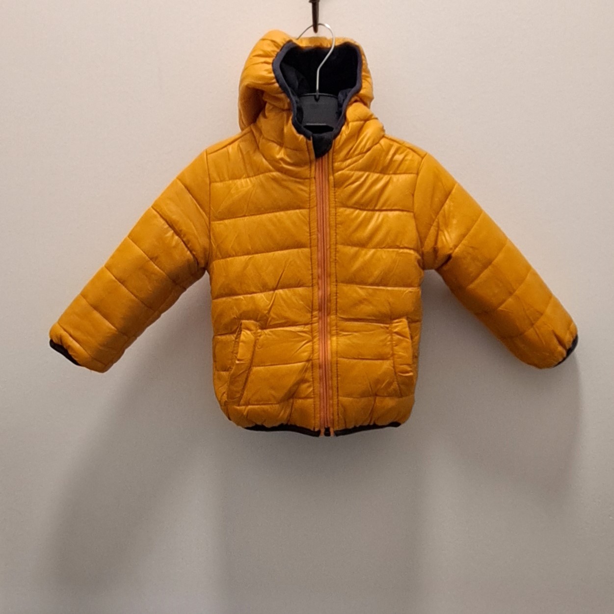 Laste kahtepidi kantav jope. Ühelt poolt tepitud kollane jope , kaks taskut, lukukaitse.