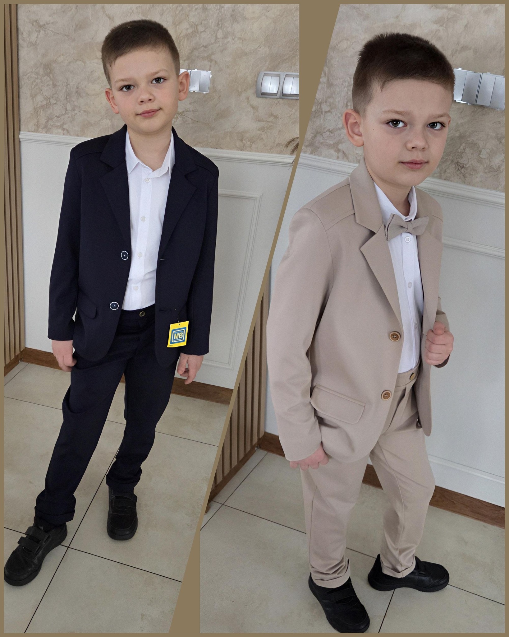Poiste pidulik ülikond. Pintsakul on vooder | kaks nööpi | taskuklapid. Materjal: 95% puuvill | 5% elastan.