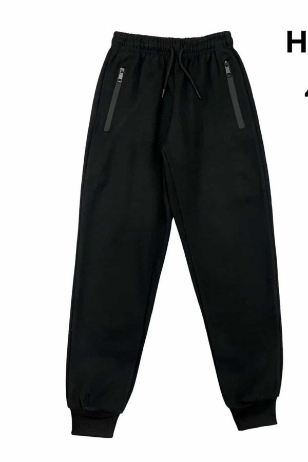 Musta värvi laste dressipüksid. Kummiga ja pingutusnööriga värvel, kakslukuga taskut.