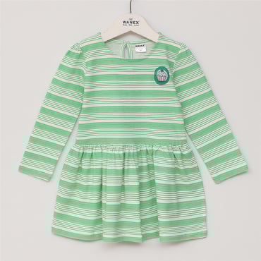 Ümara kaelusega ja pika varrukaga tüdrukute puuvillane kleit. Materjal: 95% puuvill| 5% elastan.